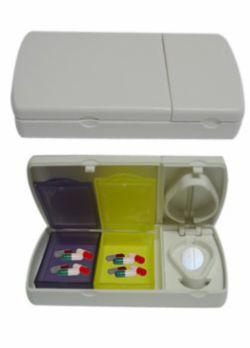 Porta pílulas,material em plástico resistente com 2 repartições e cortador