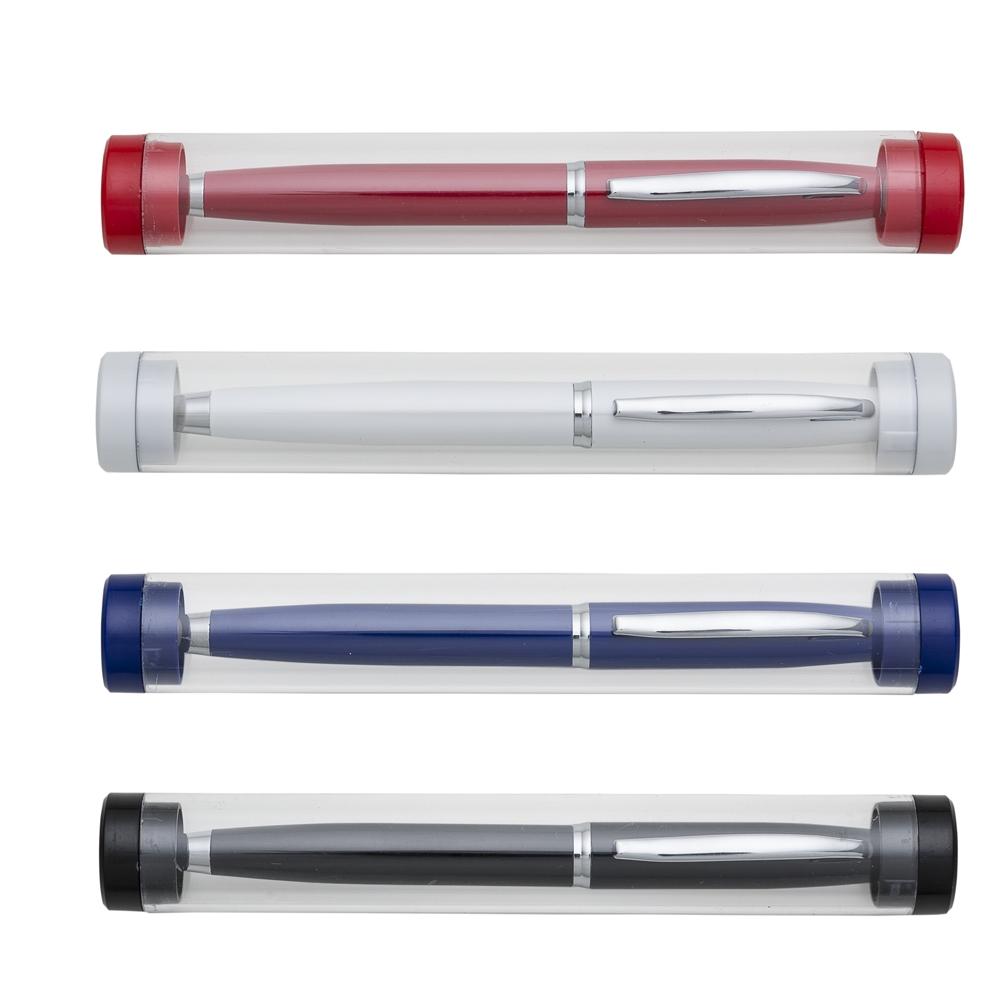 Canetal metal com tubo de acrílico cilíndrico. Caneta inteira colorida com detalhes prata, clip metal e touch na parte superior. Aciona por giro. observação: Tubo: 5 cm x 2 cm – Caneta 14,2 cm x 1,5 cmAltura:50mm.Largura:20mm.Medidas aproximadas para.gravação (CxD):Tubo 13,5 cm x 2 cm.Tamanho total aproximado (CxD):Tubo: 5 cm x 2 cm –Peso aproximado (g):37